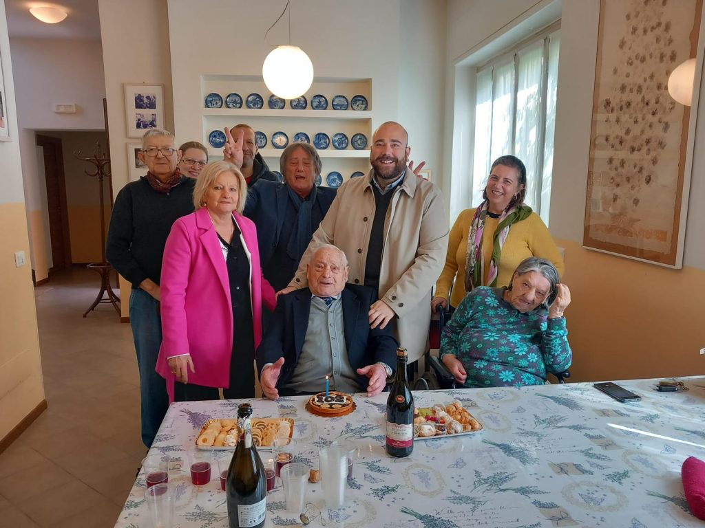 Piero Gaverini, vedovo dal 2019, bergamasco di origine, ha compiuto 102 anni. Un nonnino che ama ricordare del passato il suo lavoro, definendosi «colui che ha acceso la luce in Italia», visto che lavorava per l’azienda che ha provveduto agli allacciamenti dal Nord al Sud del nostro Paese.In gioventù, si è ammalato di tifo nero, una gravissima malattia, che Pietro, con tenacia e forza, ha combattuto e vinto, tanto che il suo medico, all’epoca gli disse: «Dopo questa camperai 100 anni». E ora addirittura festeggia i 102 anni. È ospite della casa di cura in Via Campagnoli gestita dalla comunità di Sant’Egidio. A portare gli auguri della città il Presidente del Consiglio