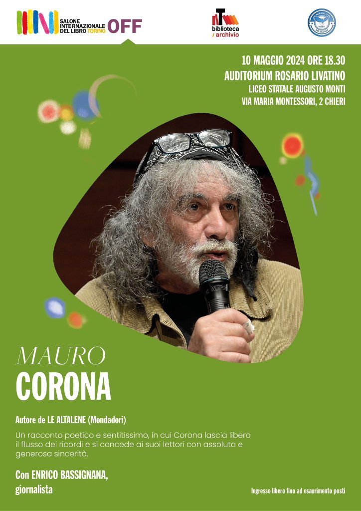 Presentata la XX edizione del Salone del Libro OFF. A Chieri verrà Mauro Corona, venerdì 10 maggio alle ore 18.30 presso l’Auditorium Livatino del Liceo Monti.