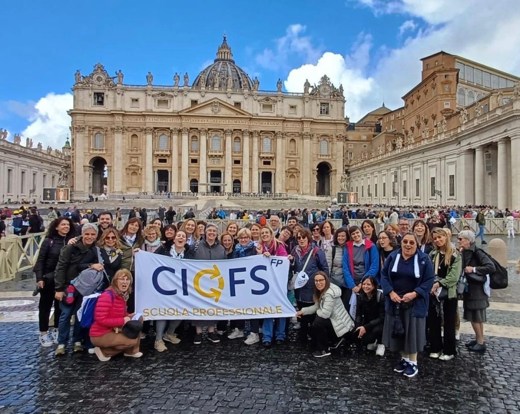Il 3 maggio udienza straordinaria da papa Francesco in Piazza san Pietro a Roma, a cui hanno partecipato delegazioni della formazione salesiana di tutta Italia. Anche dal Piemonte erano presenti numerosi formatori del Ciofs Fp Piemonte Ets. Tra questi i formatori del Ciofs S.Teresa di Chieri accompagnati dall ex direttrice del Cfp suor Monica Roncari.