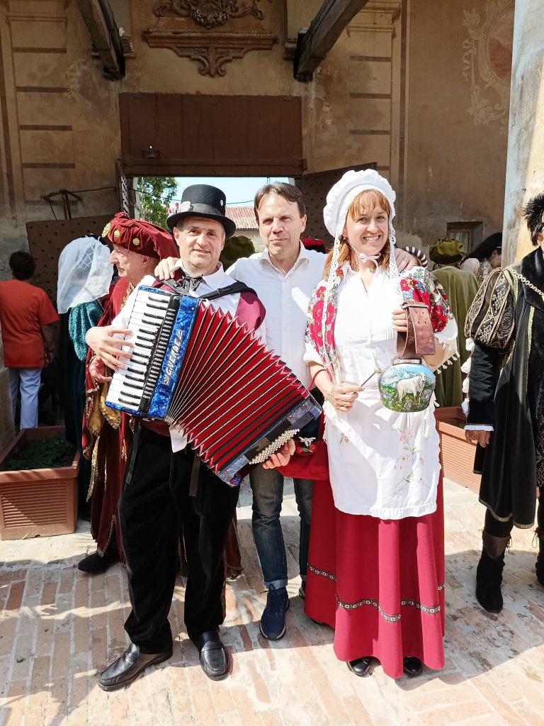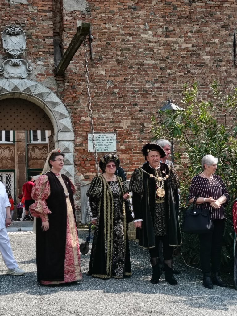 Nel piazzale del Castello presentazione dei gruppi partecipanti al pubblico e agli ospiti della residenza degli anziani.