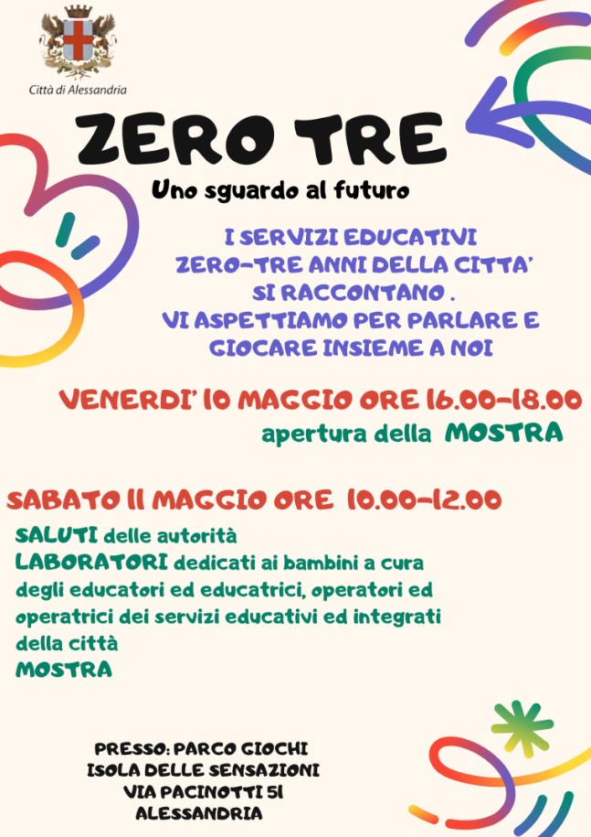 Venerdì 10 e sabato 11 maggio si svolgerà ad Alessandria, presso il parco “L’isola delle Sensazioni”, in via Pacinotti 51, l’evento promosso dal Comune di Alessandria “Zero Tre: uno sguardo al futuro”.