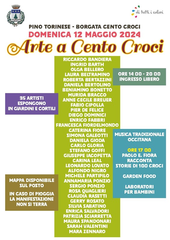 Ancora una volta il borgo di Cento Croci si anima grazie ad un gruppo di vicini di casa, per dar vita alla terza edizione di “ARTE A CENTO CROCI”, esposizione estemporanea di artisti di ogni levatura, pinesi e non, dal ricco panorama dell’arte contemporanea piemontese (e non solo).