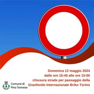 Il Comune di Pino Torinese comunica ai cittadini che domenica 12 maggio, in occasione del passaggio della “IX Granfondo Internazionale BRIKO Torino”, saranno chiuse al traffico le seguenti vie: