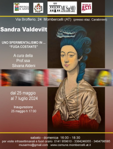 La curatrice Anna Virando ed il direttivo del MUSarMo di Mombercelli sono lieti di invitarvi sabato 25 maggio alle 17 all’inaugurazione della mostra di Sandra Valdevilt intitolata “Uno sperimentalismo… in fuga costante” .“La mia arte è una finestra sull’eterna fanciullezza, osservando le mie opere si può tornare bambini, quando la realtà si confondeva con la magia e fantasticare, creando infinite storie nuove”. L’artista è nata a Torino nel 1974. I suoi trattamenti cromatici sono l’attuale compimento di una lunga militanza in campo artistico: la sua predisposizione per il disegno e per la narrativa coloristica più articolata, assiduamente coltivata, è emersa subito negli studi umanistici e nella laurea in Sociologia e ricerca sociale. L’amore per la natura l’ha sempre accompagnata come fonte inesauribile di suggestioni di affascinanti opere figurative e astratte. E necessario riconoscere alla pittrice torinese una caratura del tutto personale, in virtù dei suoi originali sistemi figurativi, spesso in primo piano, siano essi umani o animali, ai quali conferisce significati di intensa espressività, con aloni di colori dalla travolgente suggestione coreografica. Le sue elaborazioni si definiscono sequenze visive in cui i segni dei tratti si caricano di una simbologia allo stesso tempo metaforica e seducente, in sintonia con la personalità dell’autrice. Iconografie che profumano di magia e mistero, sulle quali respira un’atmosfera sospesa di lirica musicalità, con la padronanza della tecnica del colore, spesso emergente dal fondo nero. Ciò che contraddistingue l’artista è la ricerca, il coraggio di mettersi costantemente in gioco, oltre il rassicurante traguardo già raggiunto che ha avuto la gratificazione del pubblico. Sandra Valdevilt è questo: un’artista che manifesta una continua inarrestabile energia. Partendo da suggestioni Pop, anche attraverso la rivisitazione personalissima del fumetto, i temi delle sue opere spaziano verso figurazioni di una muta sospensione surreale e ambienti come spazi di una rappresentazione mentale, metafisica, per poi intraprendere una sorta di iper-realismo che si ispira a temi classici, col quale le figurazioni dialogano proponendosi come “visioni” che interrogano il nostro presente. Le sapienti sfumature di colore creano nelle espressioni astratte evoluzioni chiaroscurali che permettono di andare oltre la tela e immaginare un luogo sospeso tra luci e ombre, colori accesi e toni scuri, sorprendentemente mescolati. L’artista ha al suo attivo numerose e importanti mostre personali e collettive, ha preso parte a Expo Dubai 2021, le sue opere hanno ricevuto importanti premi ed è inserita nelle principali pubblicazioni italiane dedicate all’arte contemporanea. MUSarMo – Museo Arte Moderna e Contemporanea