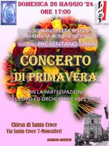 Si terrà domenica prossima, 26 maggio, il Concerto di Primavera nell’Arciconfraternita di Santa Croce a Moncalieri.