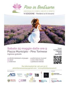 Sabato 25 maggio, a Pino, torna il Festival Pino in Ben-Essere, una giornata di sensibilizzazione e d’incontro fra diverse discipline e approcci al benessere!