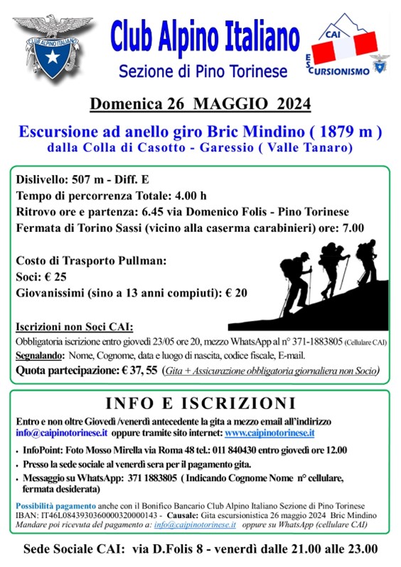 La Sezione di Pino Torinese del Club Alpino Italiano propone una bella escursione ad anello giro Bric Mindino dalla Colla di Casotto a Garessio.
