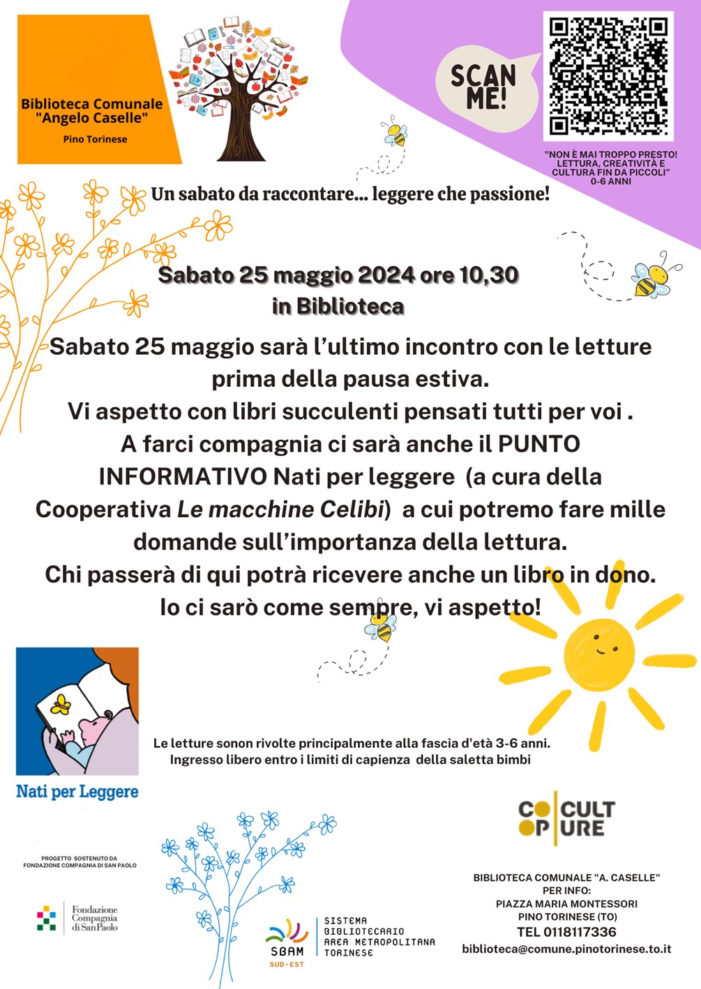 Sabato 25 maggio sarà l’ultimo incontro con le letture ad alta voce per bambini e famiglie prima della pausa estiva.