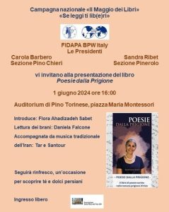 La Fidapa di Pino-Chieri organizza la presentazione del libro “Poesie dalla prigione”.