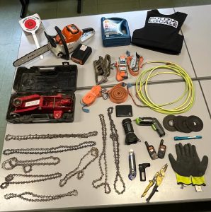 Durante il controllo del territorio una pattuglia della Polizia Locale di Biella fermava un veicolo con a bordo due soggetti; i due apparivano fin da subito sofferenti al controllo talchè gli agenti decidevano di approfondire le verifiche ispezionando il veicolo. Veniva subito notata una motosega professionale nuova che, da approfondimenti, era stata rubata un paio di giorni prima in un capannone di Valdilana. Per tale motivo gli agenti del comando di via Tripoli 48 effettuavano una perquisizione più meticolosa del mezzo, rinvenendo altri strumenti da lavoro artigianale oggetto di furto poichè rubati dal magazzino della Regione Piemonte di Bioglio.