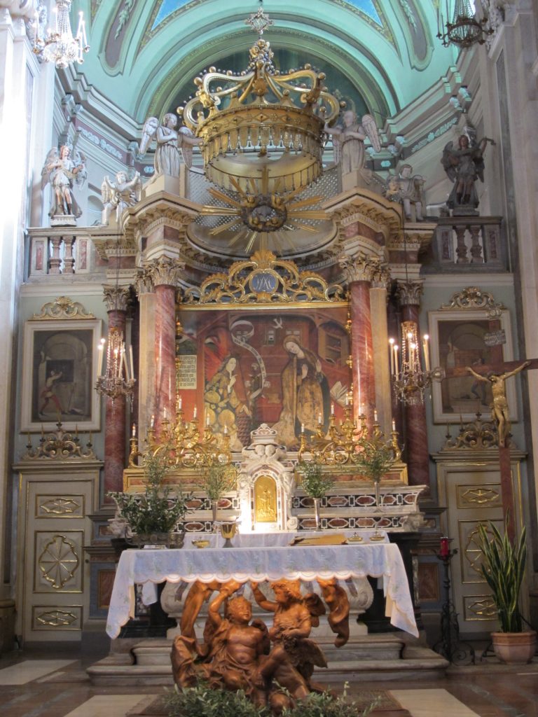 Non certo come il Duomo, ma a Chieri anche il  Santuario dell’Annunziata   è ricco di sorprese in fatto  di arte e di storia.  Sorprese tornate di attualità in queste settimane,  nelle quali la Confraternita della Misericordia, che gestisce il santuario, mette in mostra, insieme alla plurisecolare raccolta di ex voto,  una selezione di documenti  antichi che raccontano i momenti cruciali della sua storia, dalle origini medioevali ai nostri giorni. Dal punto di vista artistico, il centro di attrazione  del santuario è il dipinto raffigurante l’Annunciazione dell’arcangelo Gabriele alla Beata Vergine Maria: un’opera che,  racchiusa in una  splendida edicola marmorea, sovrasta l’altar maggiore ed è tutto una sorpresa. A cominciare dalla tecnica usata dall’artista: infatti, trattandosi di un dipinto eseguito su muro, verrebbe spontaneo pensare che si tratti di un affresco, ed è quello che tutti, compresi gli studiosi che hanno avuto modo di interessarsene, hanno creduto per secoli.  Doveva arrivare l’anno  1957 perché un semplice restauratore, il prof.  Severino Borotti, che aveva avuto l’incarico di staccare il dipinto dal muro e di restaurarlo,  si accorgesse che non si trattava di un affresco ma di una pittura ad olio su muro: una tecnica poco usata da noi, ma molto utilizzata nell’Europa del Nord, specialmente dai pittori fiamminghi.  Il professore, dopo aver staccato con successo il dipinto e averlo ricollocato in posizione più rialzata rispetto a prima, si rifiutò di restaurarlo, perché temeva per l’integrità della finissima pellicola di colore ad olio di cui era formato.