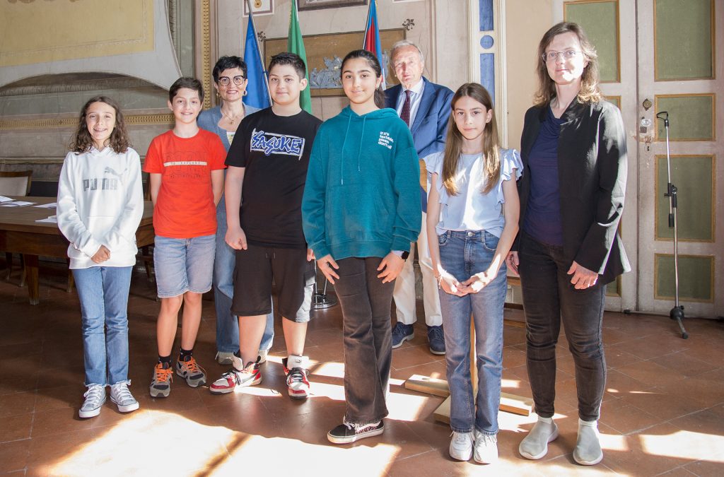 Nella prima foto: da sinistra Rebecca Savio di Chieri 1° premio, la Prof.ssa Martina Faccio di Chieri ( loro insegnante) e Matide Demuro di Chieri 2° Premio, della Scuola secondaria 1° grado Oscar LeviNella seconda foto: alcuni segnalati di Chieri, con la presidente di Giuria prof.ssa Diletta Bianco