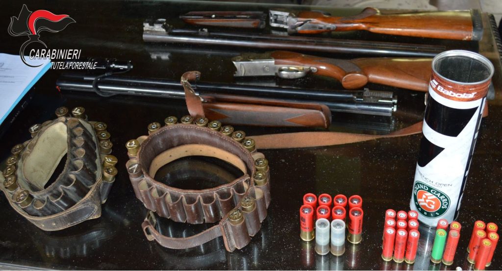 Nel corso della perquisizione, eseguita con il supporto di altri reparti della linea forestale e territoriale dell’Arma, sono stati rinvenuti fucili da caccia con matricola abrasa, munizioni, nonché strumenti di caccia vietati dalla legge quali una gabbia, lacci metallici e tagliole, materiale tutto sottoposto a sequestro.