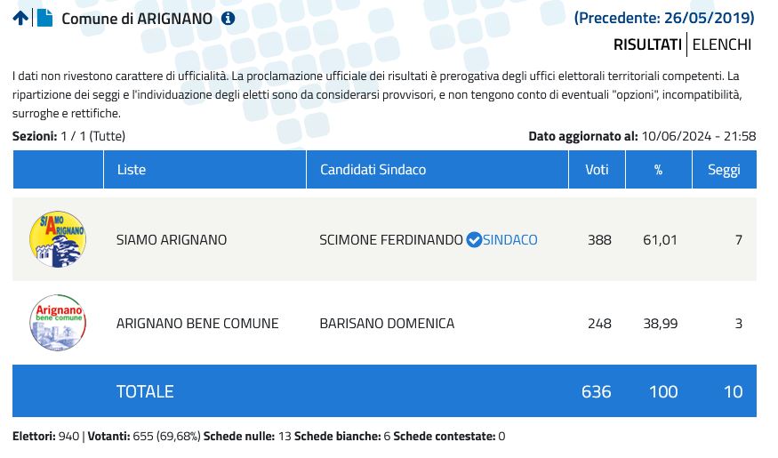 SPECIALE ELEZIONI. Arignano, Scimone si conferma sindaco di Redazione · 10 Giugno 2024 (FONTE:ELIGENDO) Visto da: 417