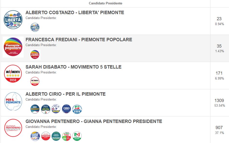 SPECIALE ELEZIONI. Chieri. Il voto per la Regione. Cirio viaggia oltre il 53%, Pentenero al 37%