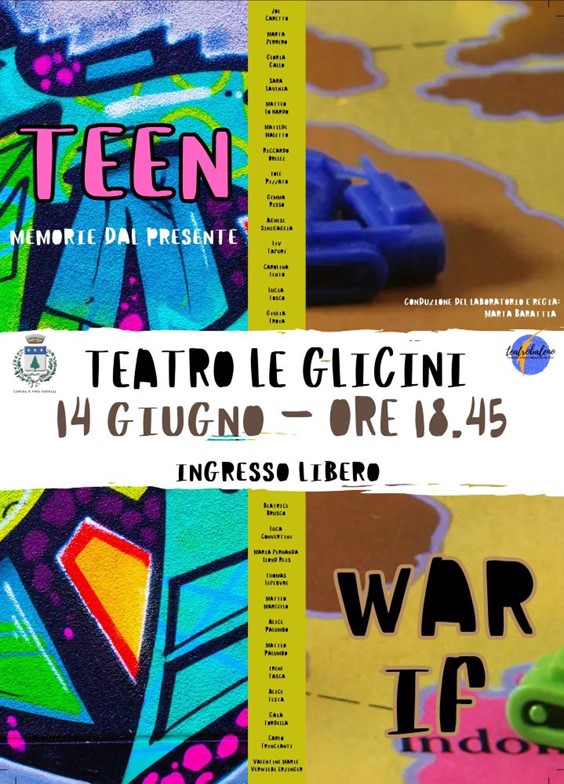 L’appuntamento con lo spettacolo del Teatrobaleno, il Laboratorio Teatrale Giovanile Pinese diretto da Marta Barattia, è per venerdì 14 giugno alle ore 18,45 al Teatro Le Glicini.