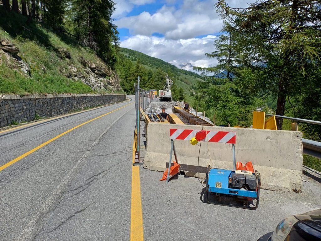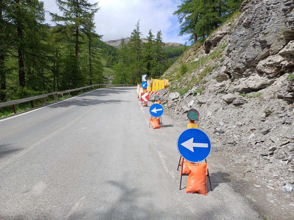 A Sestriere sulla Strada Provinciale 215 l’intervento per il rifacimento dei muri di protezione a monte della carreggiata è stato momentaneamente sospeso per poter rimuovere il semaforo e garantire il doppio senso di circolazione fino alla riapertura della Provinciale 23 a Champlas du Col.