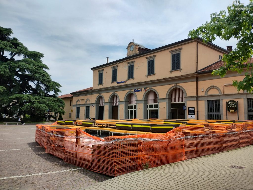 A Chieri, è iniziato l’atteso cantiere alla stazione ferroviaria per alzare il piano del marciapiede di accesso al treno, al primo binario. Il materiale necessario è depositato nel piazzale antistante la stazione. Il termine dei lavori è previsto per fine ottobre (Foto di Pietro Lombardi)