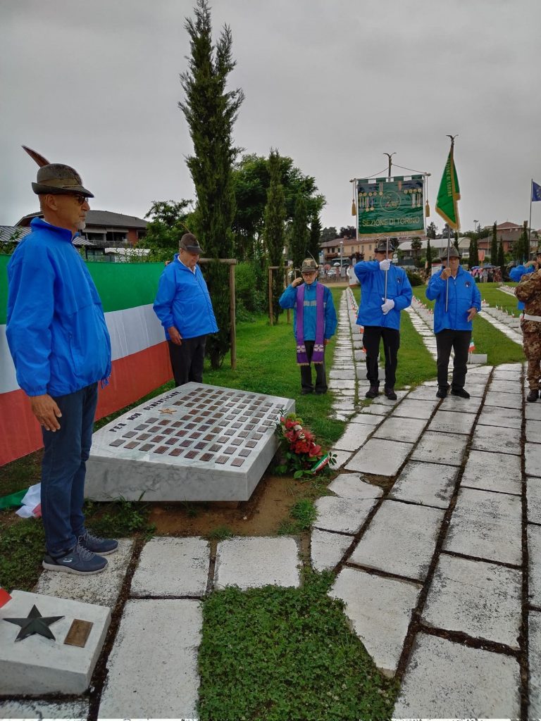 Sabato, gli onori al monumento all’Alpino al Murè e la sfilata dopo l’alzabandiera, prima della Serata Alpina con il Coro Arco Alpino di Chieri.
