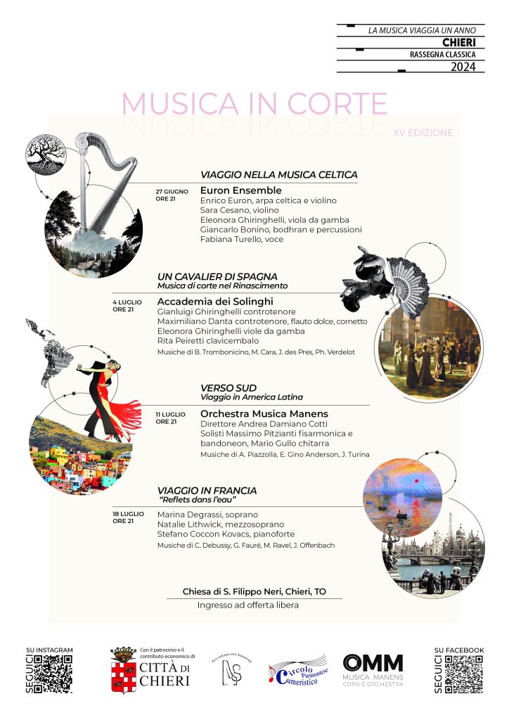 Chieri. “Musica in Corte” inizia con un viaggio nella musica celtica 🗓 di Redazione · 24 Giugno 2024 Giovedì 27 giugno in San Filippo l’Euron Ensemble, poi il 4 luglio la musica di corte nel Rinascimento Visto da: 699 from 27 Giugno 2024 to 18 Luglio 2024 Scheduled CHIERI e CHIERESE