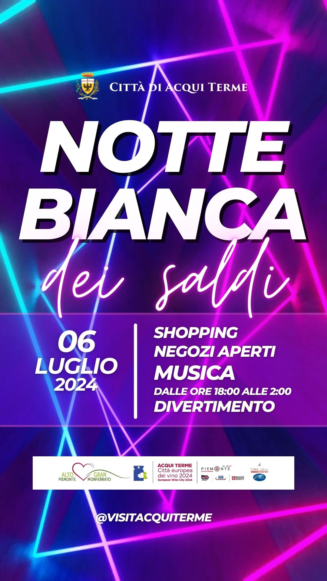 ACQUI TERME. Sabato 6 luglio “NOTTE BIANCA ” dalle ore 18,00 alle 2,00.