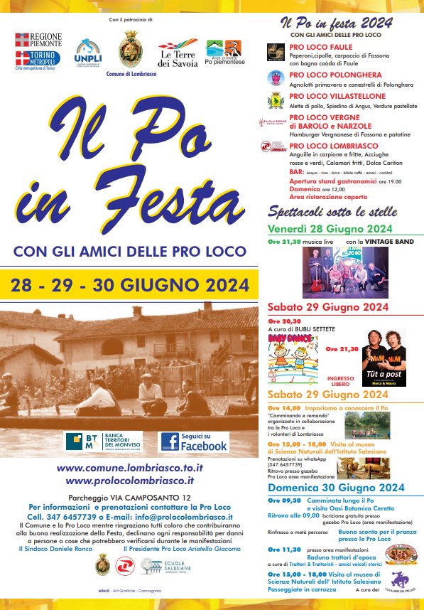 LOMBRIASCO. Da venerdì 28 a domenica 30 giugno “IL PO IN FESTA” tra natura e gastronomia.