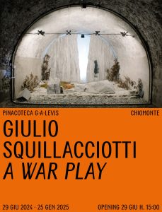 L’inaugurazione della mostra A War Play, dell’artista Giulio Squillacciotti, a cura di ARTECO e CRIPTA747, si terrà sabato 29 giugno 2024 dalle 15 alle 19, presso la Pinacoteca G.A. Levis di Chiomonte.