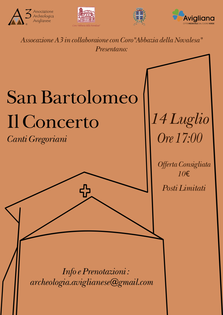 Questo Luglio viene presentato un nuovo evento presso la Chiesa – Priorato di San Bartolomeo al Lago Piccolo di Avigliana, organizzato dall’Associazione Archeologica Aviglianese – A3, con il patrocinio della Città di Avigliana: Domenica 14 Luglio la prima edizione di “San Bartolomeo – Il Concerto” con la partecipazione de il coro “Abbazia della Novalesa”.