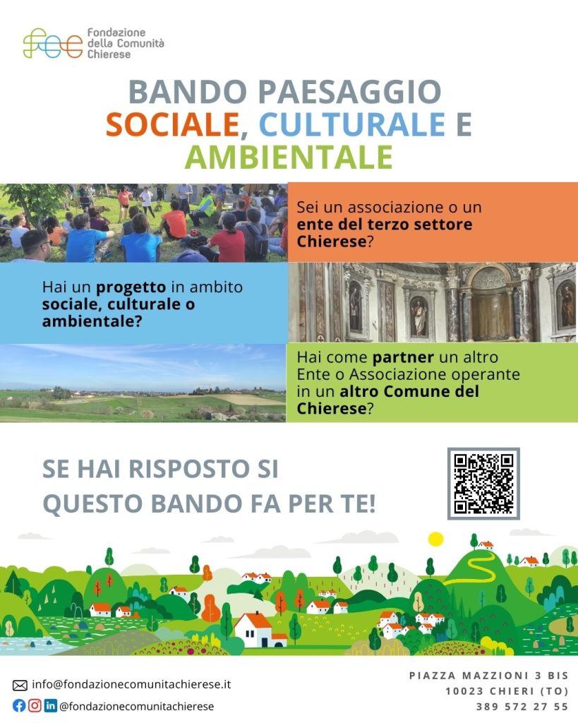 Fondazione della Comunità Chierese. BANDO “Paesaggio sociale, paesaggio culturale, paesaggio ambientale” – seconda edizione – luglio 2024
