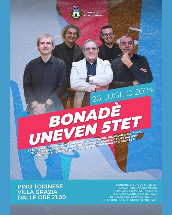 Pino Torinese. Venerdì 26 luglio concerto jazz con “Bonadè Uneven 5tet” nel giardino di Villa Grazia