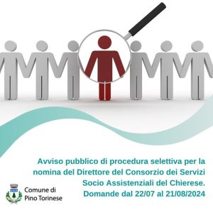Per maggiori informazioni: https://comune.pinotorinese.to.it/novita/avviso-pubblico-di-procedura-selettiva-per-nomina-del-direttore-del-consorzio-dei-servizi-socio-assistenziali-del-chierese/