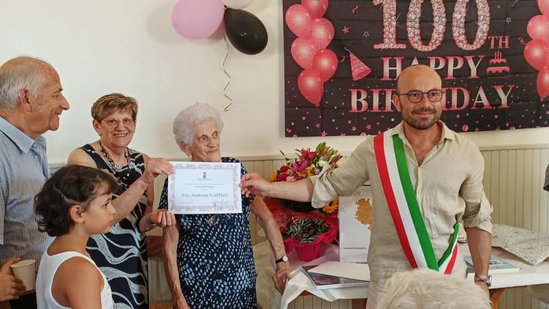 Nella foto con la neo centenaria il Sindaco Alessandro Balliano e i parenti.