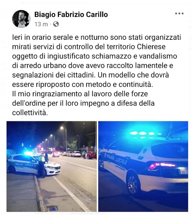 Chieri. “Servizi serali di controllo del territorio”, un post dell’assessore alla Polizia Locale di Redazione · 6 Agosto 2024 Visto da: 244