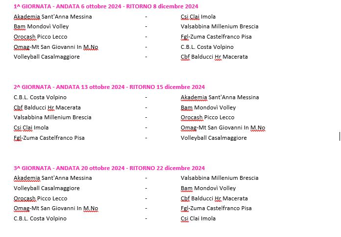 Pubblicati i calendari dei due gironi del campionato di A2 femminile di Volley. Mondovì debutta in casa contro Brescia il 6 ottobre