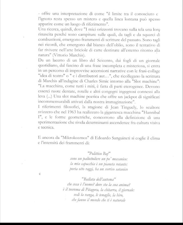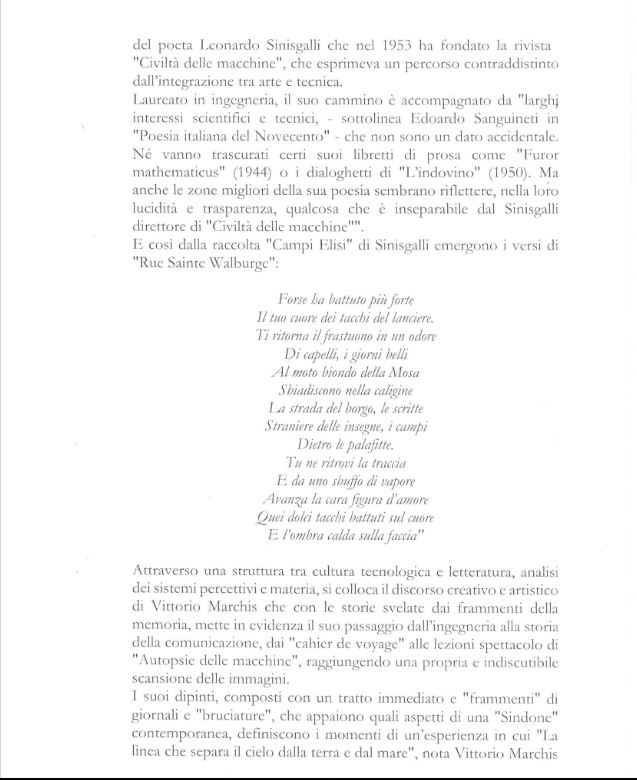 Sperimentazioni, installazioni, pagine pittoriche, fotografie e libri d’artista appartengono al suo percorso sempre estremamente rigoroso, controllato, scandito da lavori come “Torsione” e “Respiro o dal ciclo “Particolare”, dall’impronta concettuale, e dai graniti della serie “Verso oltremare”, in cui si avverte un senso di interiore sospensione dell’immagine-ideata nello spazio cosmico.