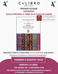 Venerdì 9 agosto 2024, alle ore 18.30, a Cantoira, presso la Libreria Ca’ Libro di Via Roma 151, verrà nuovamente presentato il 154° volume della Collana editoriale: I Remmert dalla Prussia a Ciriè alle Valli di Lanzo. Una storia di industria e progresso, a cura di Angelica e Cristina Natta-Soleri, Aldo Audisio