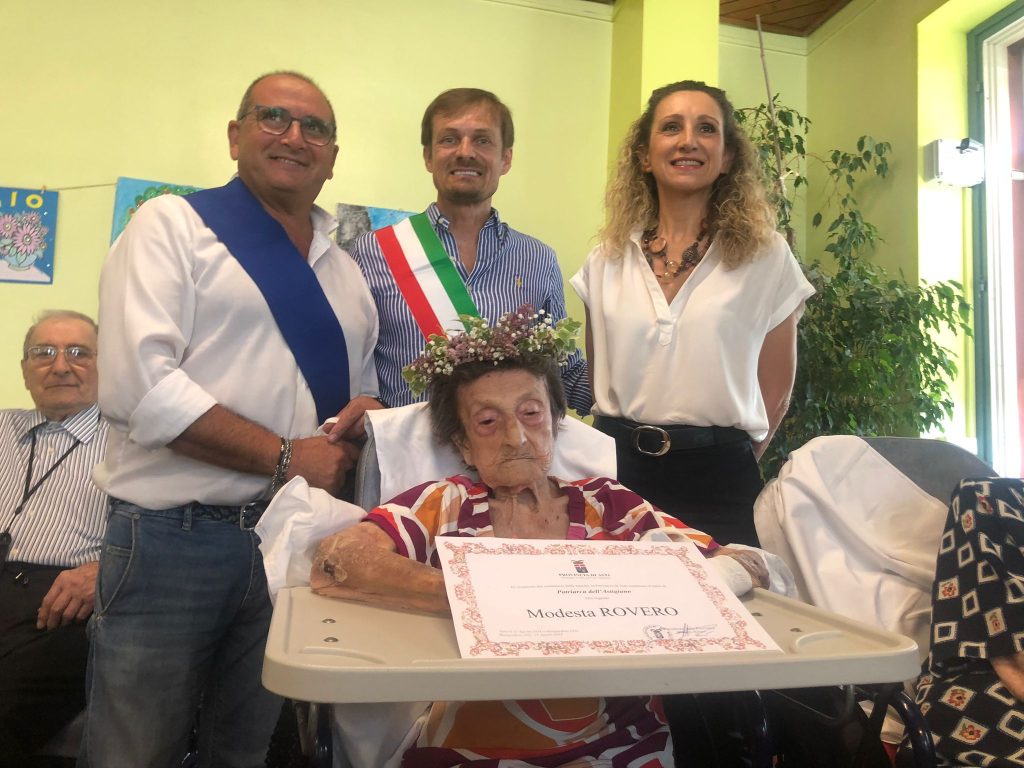 Da dieci anni è ospite della struttura “Villa Pinuccia” di Mongardino dove a festeggiarla sono intervenuti, oltre alla famiglia, il Consigliere Provinciale Carlo Mancuso che a nome del Presidente Maurizio Rasero le ha consegnato l’attestato di “Patriarca dell’Astigiano” insieme ad alcune pubblicazioni dell’Ente e il sindaco di Mongardino Fausto Gulino insieme al vice sindaco Barbara Baino.