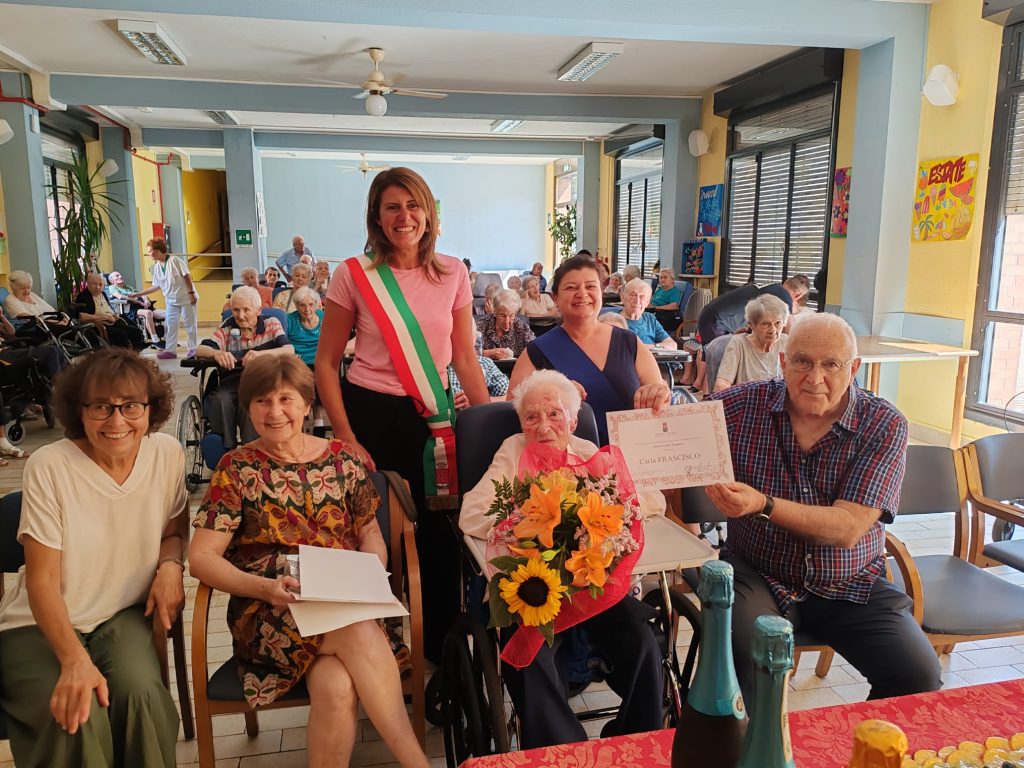 Ora risiede presso la Fondazione Rossi di Buttigliera d’Asti dove a festeggiarla sono intervenuti, oltre alla famiglia e agli ospiti della struttura, il Consigliere Provinciale Tiziana Gaeta che a nome del Presidente Maurizio Rasero le ha consegnato l’attestato di “Patriarca dell’Astigiano” insieme ad alcune pubblicazioni dell’Ente e il Consigliere del Comune di Buttigliera d’Asti Daniela Volpatti.