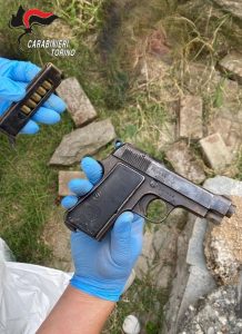 La successiva perquisizione domiciliare ha dato esiti sorprendenti e i militari dell’Arma hanno trovato e sequestrato un piccolo arsenale:- Una pistola “BERETTA” mod. 34 cal. 9 irregolarmente detenuta con relativo munizionamento (compatibile con i bossoli repertati nei pressi dell’abitazione dellavittima);- Una pistola “PEDERZOLI ITALY” cal. 45 irregolarmente detenuta;- Un fucile ad avancarica, anch’esso di provenienza illecita;- Una bomba di mortaio, scovata dall’unità cinofila di Volpiano, successivamente messa in sicurezza e rimossa dagli Artificieri Antisabotaggio.