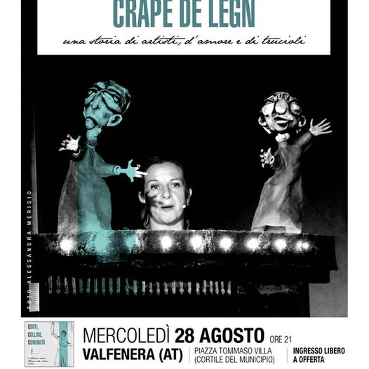 Nell’ambito della 4° edizione del Festival dalla Piana alle colline – Corti, Colline, Comunità e… va in scena mercoledì 28 agosto alle ore 21 nella cornice di piazza Tommaso Villa (cortile del Municipio) a Valfenera lo spettacolo teatrale “Crape de legn – Una storia di artisti, d’amore e di trucioli”, prodotto da Luna e Gnac Teatro Associazione Retroscena, scritto e interpretato da Federica Molteni, con le scenografie Enzo Mologni, gli abiti di scena e i burattini di Lelabò – Mariabarbara De Marco e la regia Alberto Salvi. Un viaggio dagli anni ’40 al 2000 nella storia e nella società italiana, attraverso lo sguardo di due artisti che hanno saputo attraversare difficoltà e sfide grazie alla fiducia inesauribile nella loro arte. Una vicenda antica, ma straordinariamente moderna. Una storia vera, ma anche metafora di come l’arte può salvare e trasformare la vita. La capacità di aderire al mondo che cambia senza mai perdere la propria identità. Pina Cazzaniga e Benedetto Ravasio, compagni sulla scena e nella vita, scelgono di amarsi giovanissimi, contro la volontà delle loro famiglie; scelgono di andare oltre il mestiere di fornai stabilito per loro da generazioni; scelgono l’incertezza e l’instabilità di un’arte difficile e poco redditizia; scelgono contro tutto e contro tutti. Spinti solo dalla certezza di ciò che amano, contro un mondo che li sorpassa con i primi spettacoli della televisione, contro abitudini nuove che allontanano gli spettatori. Ma vincono: invitati in televisione da Mike Bongiorno, poi alla Scala di Milano e nei festival di teatro di figura più importanti al mondo. Pina Cazzaniga sarà la prima donna burattinaia in Italia, tanto da ricevere nel 2011 il premio alle Donne del Teatro di Figura dal Presidente della Repubblica. Una storia a matriosca, che dentro ne contiene tante altre, sempre più piccole e intime. La storia del teatro popolare e della Commedia dell’Arte e dentro la Seconda Guerra Mondiale e poi l’avvento della televisione e del miracolo economico. L’ingresso è gratuito a offerta libera. Per informazioni è possibile contattare il n. 3287069085. Il Festival “Corti, Colline, Comunità e…” è organizzato dall’Unione “Dalla Piana alle colline”, dai Comuni di Valfenera, Ferrere e Cellarengo, realizzato con il contributo della Fondazione CRAsti, in collaborazione con l’Ecomuseo BMA.