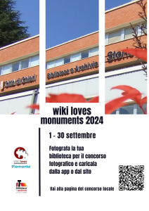 Anche la Biblioteca di Chieri partecipa al concorso Wiki Loves Piemonte 2024, sezione locale di Wiki Loves Monuments, il concorso fotografico organizzato annualmente da Wikimedia Italia.