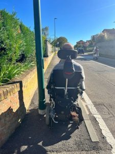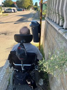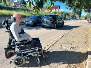 Il ciuffo d’erba sembra buffo dire che disturba la salita, ma la ruota poi ci scivola sopra e poi, più avanti è tutta buche, un altro marciapiede conserva un piccolo gradino; non ce la posso fare. Meglio passare per la strada, un po’ di posto c’è e poi chi guida, sovente è una persona gentile.