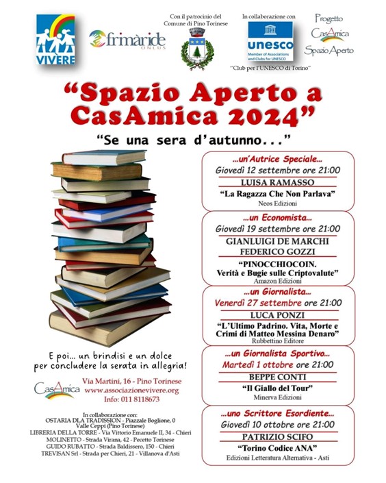 Pino Torinese. Giovedì 12 settembre a CasAmica riprende “Spazio Aperto”