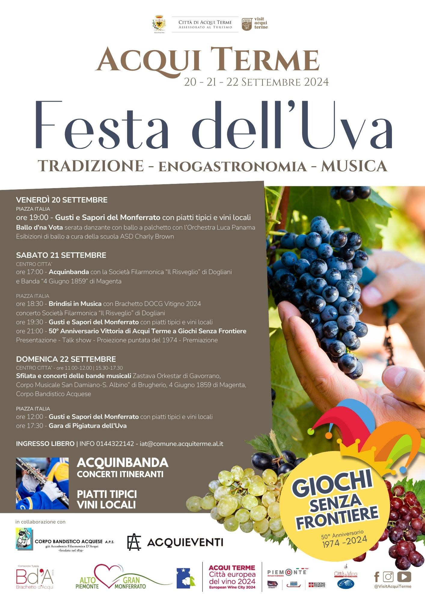 ACQUI TERME. Dal 20 al 22 settembre “FESTA DELL’UVA”.