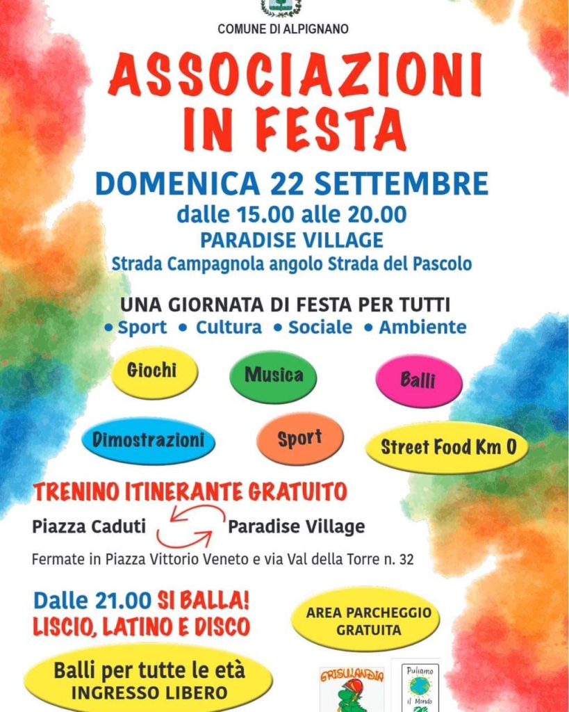 ALPIGNANO. Domenica 22 settembre “ASSOCIAZIONI IN FESTA”