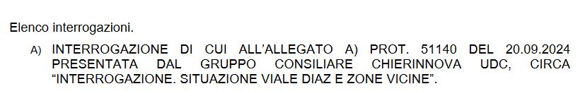 Qui sotto l’ordine del giorno degli argomenti da trattare.