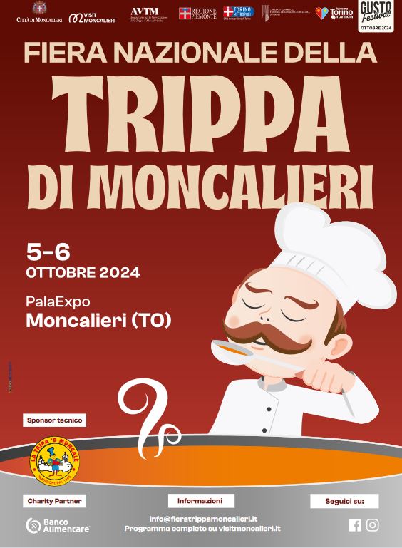 L’Associazione per la Valorizzazione della Trippa d’ Muncalè Onlus, nella persona del suo Presidente Roberto Frassati, con il contributo ed il patrocinio del Comune di Moncalieri e con il patrocinio della Regione Piemonte, della Città Metropolitana di Torino, della Camera di Commercio di Torino e di Turismo Torino e Provincia, presenta la Fiera Nazionale della Trippa di Moncalieri 2024, manifestazione a cui è tributato ogni anno un notevole affetto da parte del pubblico.