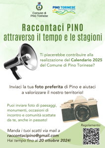 Per maggiori informazioni, consultare il regolamento completo disponibile sul sito del Comune: https://comune.pinotorinese.to.it/novita/raccontaci-pino-attraverso-il-tempo-e-le-stagioni-2/