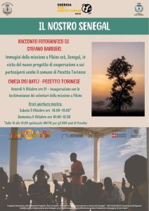 Venerdì 4 ottobre alle ore 21 presso la Chiesa dei Batù a Pecetto Torinese si terrà l’inaugurazione del racconto fotografico di Stefano Barbieri della missione a Pikine est, in Senegal
