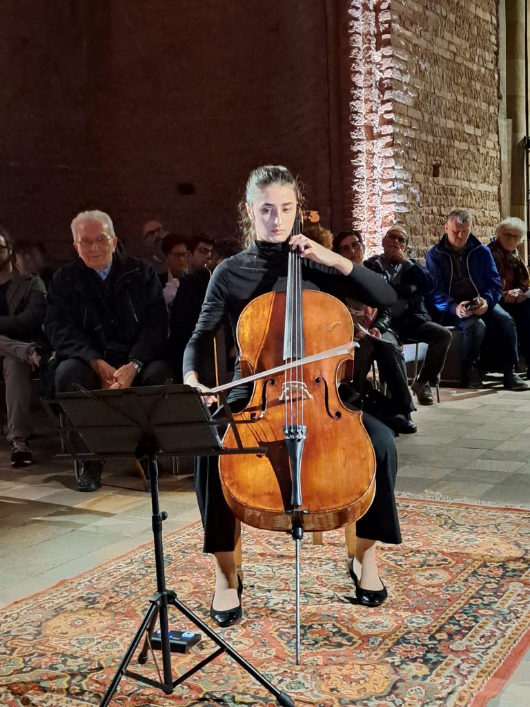 A Chieri, nel battistero del Duomo reso ancor più affascinante dalle luci di Toret Artist, che ha prodotto l’evento per il Comune di Chieri, il violoncello della giovanissima stella internazionale Caterina Isaia ha incantato il pubblico disposto in cerchio attorno a lei con un programma quanto mai vario, da Bach a Casals, da Dall’Abaco a Sollima. Di grande impatto l’esecuzione delle variazioni su un tema di Paganini, in cui la tecnica sopraffina dell’artista siciliana ha avuto modo di esaltarsi. Alla fine tanti applausi e due bis. (G.G.)
